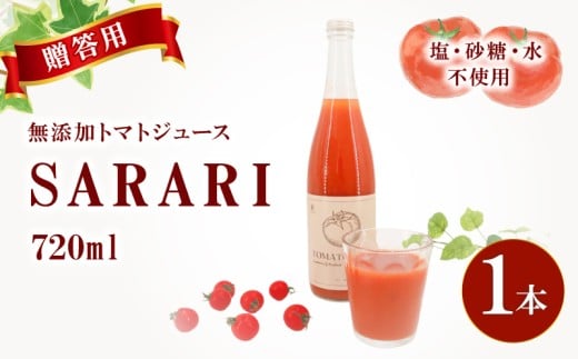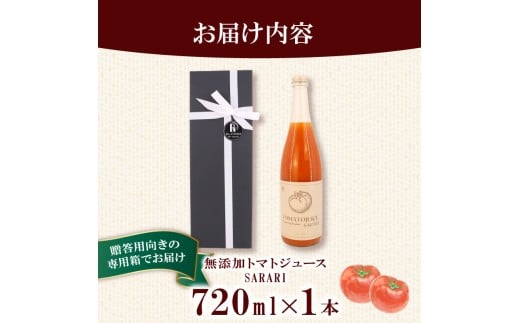 【贈答用】トマトジュースSARARI 720ml×1 ジュース トマト 野菜ジュース 食塩無添加 無添加 無塩 砂糖不使用 糖度8度以上 飲み物 飲料 リコピン 野菜 ドリンク 果実 ストレート ストレートジュース ご褒美 送料無料 千葉県 旭市 株式会社 はなわ農園 hnw005
