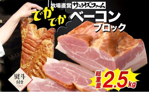 でかでかベーコンブロック約2.5kg 熨斗あり 豚肉 国産 肉 ベーコン 大きい デカい 熟成 本格的 桜 スモーク 天然塩 肉厚 ジューシー 夕食 ご飯 つまみ ステーキ つまみ お酒 送料無料 サンライズファーム 千葉県 香取市 KTRAJ026