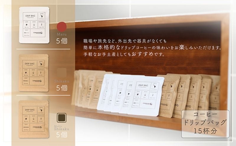 - コーヒードリップバッグ(15杯分) 3種類 珈琲 コーヒー 自家焙煎 ドリップコーヒー お手土産 旅先 職場 おすすめ ブレンド 中煎り 深煎り 極深煎り ホット アイス 個包装 [№5933-0157]