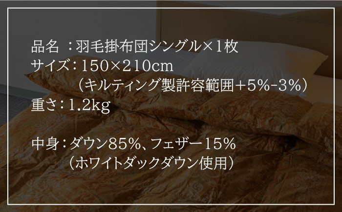 【ニューゴールドラベル】羽毛布団 【シングル】 ホワイトダックダウン85%使用 長崎県壱岐産【壱岐工芸】 [JCD012] 羽毛掛け布団 ふとん 本掛け 布団 100000 100000円 10万円