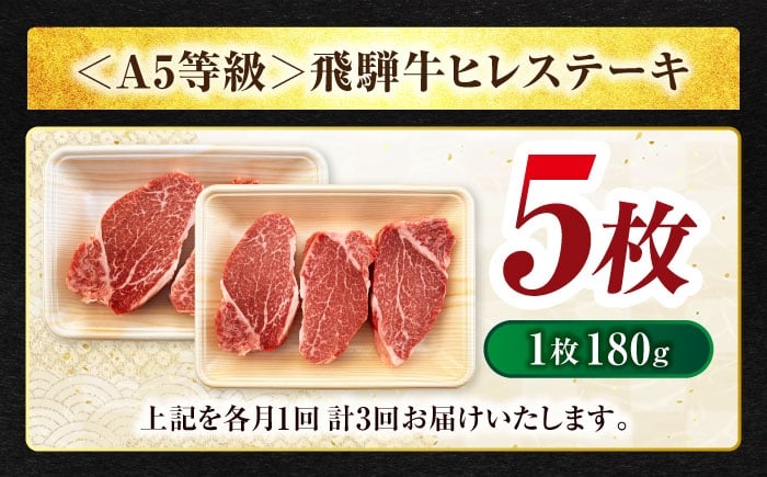 飛騨牛 ヒレ 【3回定期便】ステーキ A5ランク 180g×5枚【有限会社マルゴー】ヒレ肉 和牛 国産 霜降り [MBE012]
