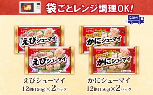 ニッスイ シューマイ 2種 各2パック セット えびシューマイ かにシューマイ レンジで簡単_エビシュウマイ カニシュウマイ しゅうまい 中華 お弁当 おかず 冷凍 時短 レンジ調理 簡単 おつまみ 手軽 一人暮らし 夕食 常備品【1686816】