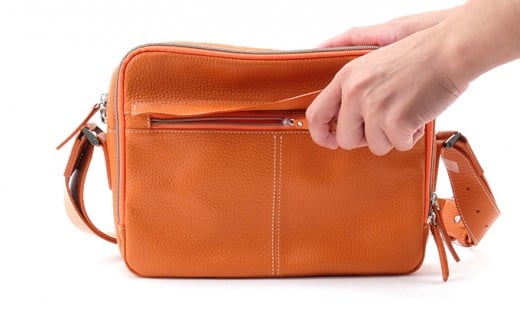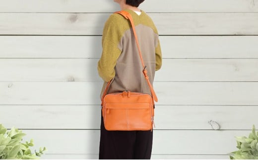 牛革 ショルダーバック横型 オレンジ|北海道 滝川市 カバン 鞄 バック バッグ ショルダー 革 革製品
