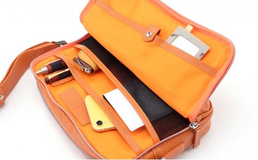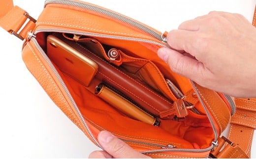 - 牛革 ショルダーバック横型 オレンジ|北海道 滝川市 カバン 鞄 バック バッグ ショルダー 革 革製品