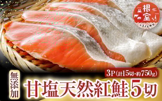 - G-28012 根室海鮮市場<直送>無添加甘塩天然紅鮭5切×3P(計15切、約750g)