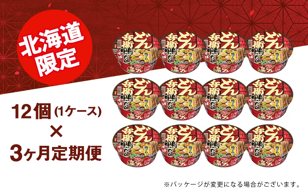 - 【定期便3カ月】日清 北のどん兵衛 鴨だしそば [北海道仕様]12個 だし そば カップ麺 即席めん 即席麺 どん兵衛 千歳 ケース