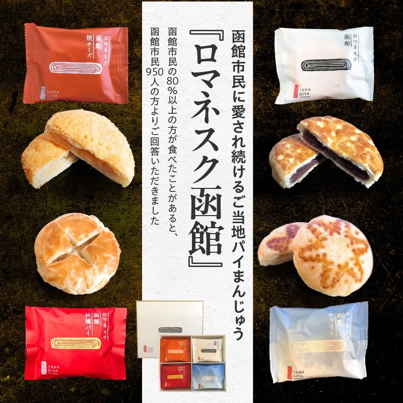 【ふるさと納税】【雪ミクパッケージ】 ロマネスク函館 あそーと 8枚 各種 2枚 × 4種類 ご当地 パイまんじゅう こしあん 焼チーズ 林檎パイ ホワイト パイ まんじゅう 焼きたて 香り 食感 常温 お取り寄せ お取り寄せグルメ 函館市 北海道 送料無料 _HD070-003