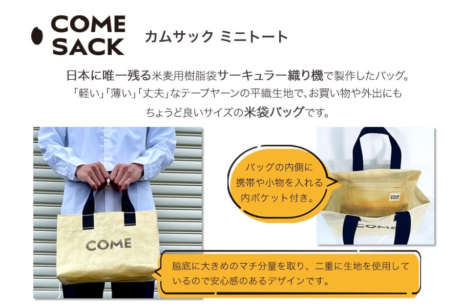 幸せをはこぶお米のふくろ カムサックミニトートPP イエロー
