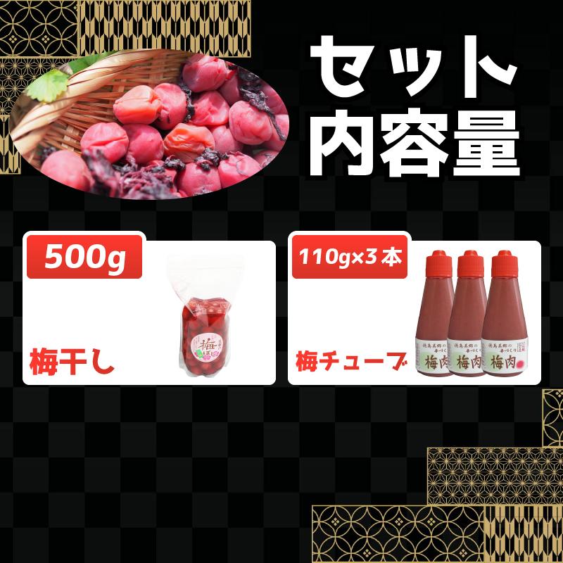 梅干 小梅干し 梅チューブ 自家栽培 南高梅 しそ風味 国産 保存料不使用 着色料不使用 昔ながら 小梅干し 500g 1袋 チューブ梅 110g 3本 料理用 ごはんのお供 おにぎり 調味料 常備食 お弁当 お取り寄せ グルメ 地場産品 美郷 美郷梅工房 徳島県 吉野川市