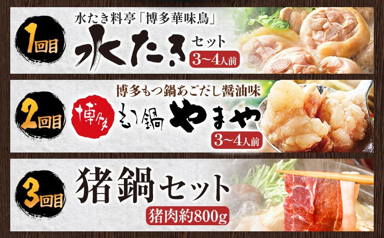 - 定期便 鍋 食べ比べ もつ鍋 水炊き 猪鍋 セット 頒布会 全3回 みやこ自慢のふるさと便・鍋 博多 やまや 華味鳥 ジビエ ぼたん鍋 もつ 鍋 ちゃんぽん 博多 おかず 晩ご飯 食べ比べ 福岡県 福岡 九州 グルメ お取り寄せ