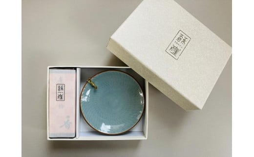 【蘇嶐窯】京焼のお香立とお香のセット【青】