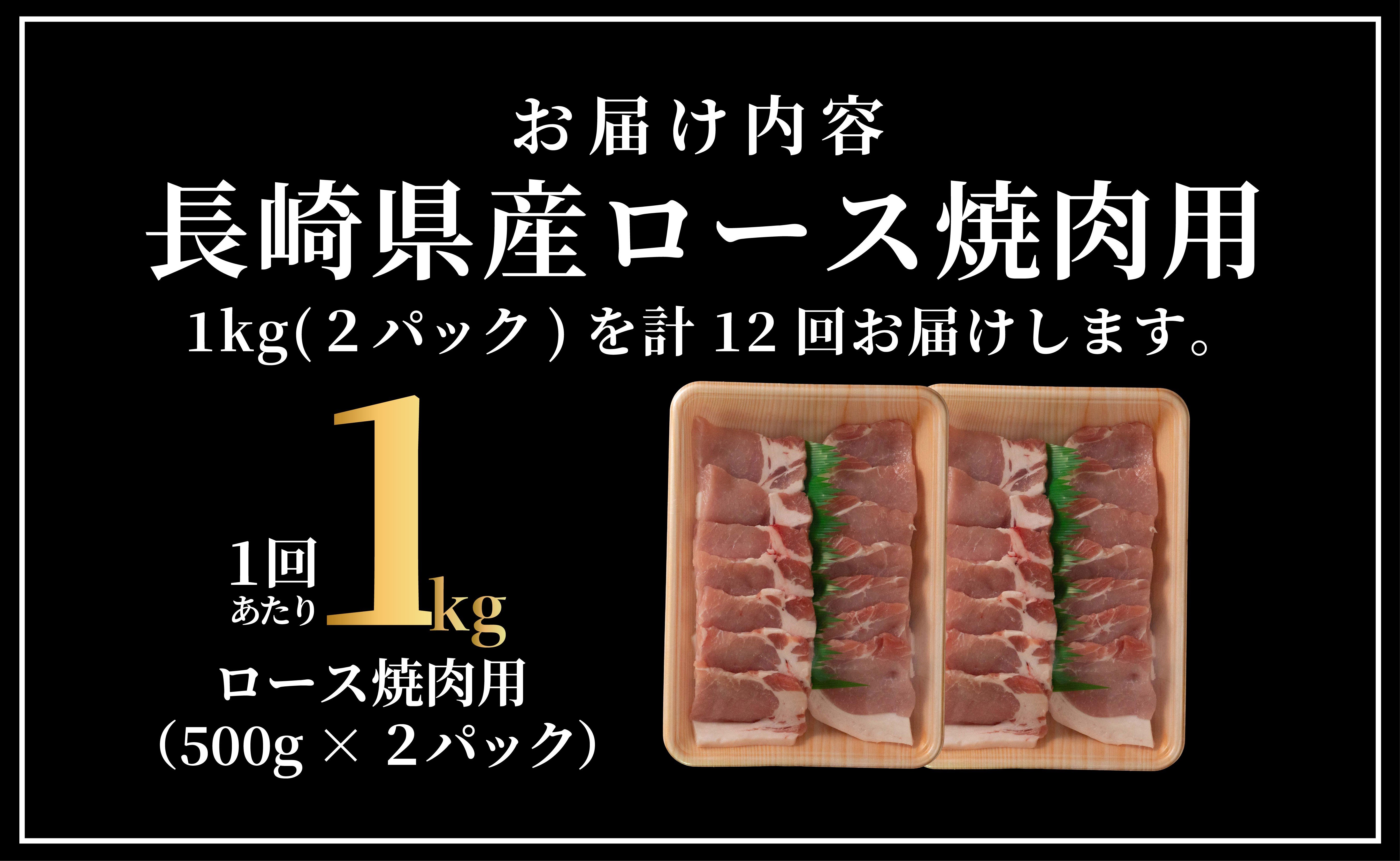 - B600 《定期便》長崎県産豚 ロース焼肉用計1kg (500g×2)【12回お届け】