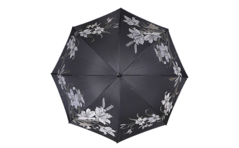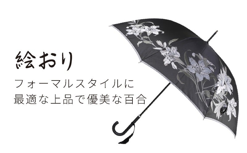 - 【槙田商店】晴雨兼用長傘 絵おり 百合 ブラック 傘 かさ 雨具 高級 晴雨 兼用 UV 日焼け ギフト ファッション 日傘 プレゼント 化粧箱 老舗