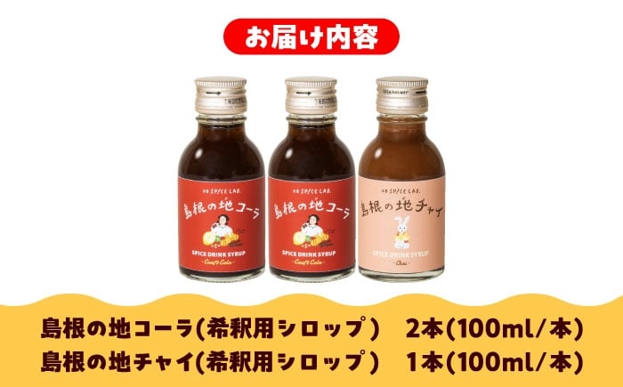 - スパイス 希釈用スパイスドリンクシロップ クラフトコーラ チャイ 100ml×3本セット 手作り ジュース ソフトドリンク 飲料 健康 ドリンク 炭酸 スパイス ハーブ 飲料 健康 美容 シロップ 希釈 お手軽 便利 セット デザート クラフトお取り寄せ 飲み比べ 詰め合わせ 人気 おすすめ ご当地 クラフトコーラ 島根県雲南市/出雲SPICE LAB. [AIAD007]