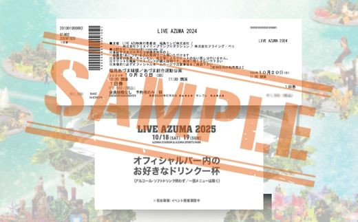 No.3106 LIVE AZUMA 2025 スタンド席付入場券(一般) 【10/18・19】2日通し券+ドリンク1杯券