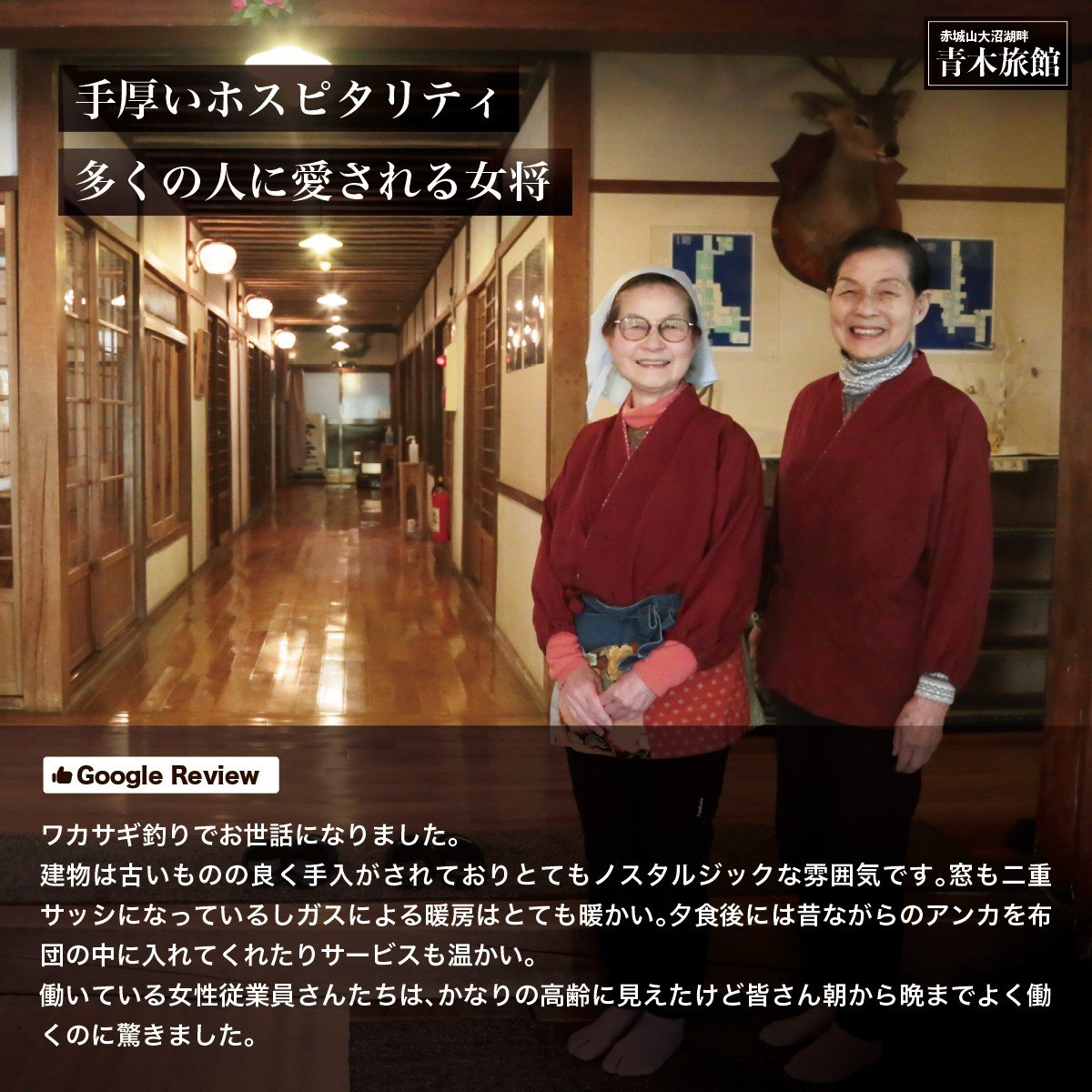 - 【選べる人数】赤城山大沼湖畔 青木旅館 1泊2食プラン 1名様分 2名様分 宿泊券|登山 ワカサギ釣り 癒し ハイキング ストレスフリー スローライフ ゆっくり わかさぎ 懐かしい 昭和 レトロ 旅館 宿泊 老舗 自然 釣り 散歩 避暑 デジタルデトックス デトックス パワースポット 群馬県 前橋市