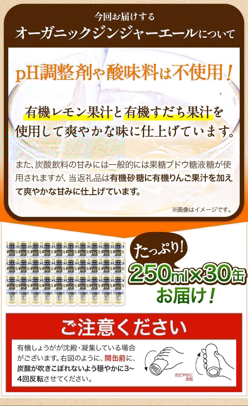 - ジンジャーエール 250ml×30缶 光食品株式会社《30日以内に出荷予定(土日祝除く)》徳島県 上板町 ジュース 炭酸水 光食品 ジンジャーエール オーガニック 有機 st-p