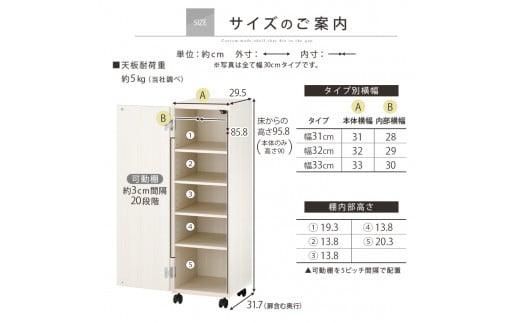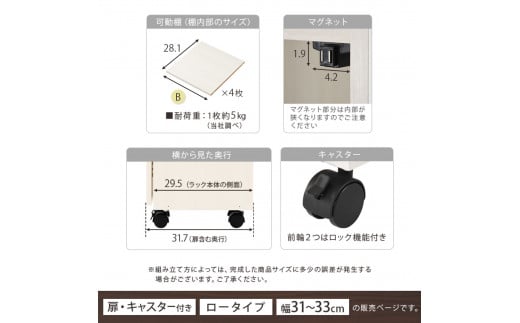 - 【国産家具】オーダーすき間ラック〔キャスター・扉付き・ロータイプ 31cm~33cm 〕(選べる4色×3サイズ)すき間ラック 収納棚 約 奥行32 高さ96 扉付き キャスター付き スリム 薄型 木製 扉付 5段 ABE400110