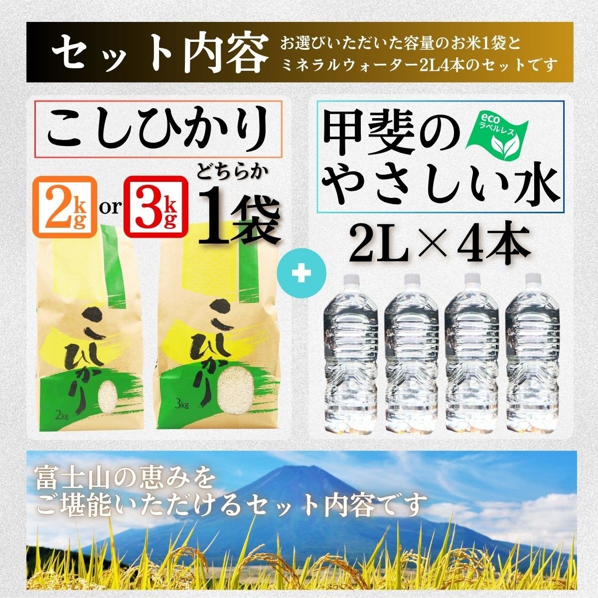 コシヒカリ 選べる容量 ミネラルウォーター 2L 4本 セット / 国産 こしひかり 2キロ 3キロ 令和7年 新米 米 お米 保存袋 水 天然水 飲料水 生活必需品 ギフト 贈り物 お歳暮 ふるさと納税 送料無料 [注目] 【n0662_nsk】