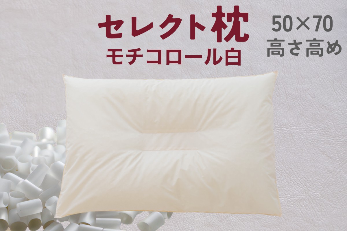 セレクト枕 モチコロール白 標準タイプ 中央くぼみタイプ 高さ高め (50×70cm)