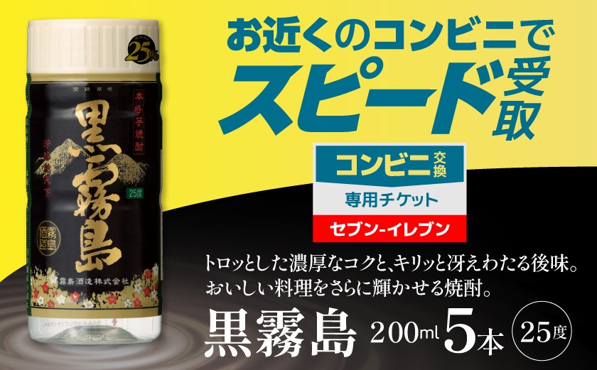 - コンビニ交換専用チケット(セブン-イレブン)黒霧島25度200ml×5本_C5-N901