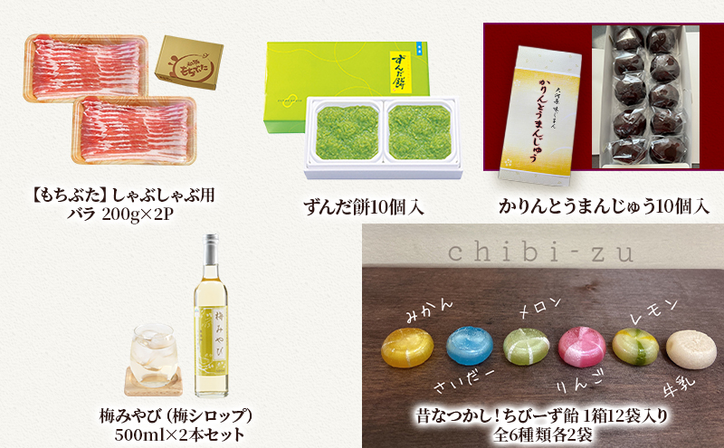 - 【先行受付・2026年3月より各月出荷】【8ヵ月定期便】全8回 大河原町厳選セット もちぶた 萩の月 ずんだ餅 かりんとう まんじゅう 梅 シロップ 飴 ゆず バスクチーズケーキ ハム ソーセージ 角煮