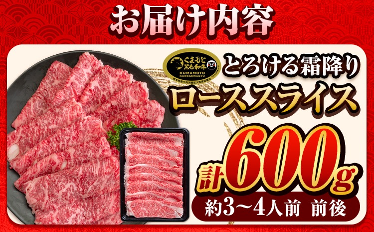 牛肉 くまもと黒毛和牛 サーロイン リブロース ローススライス 600g 牛肉 冷凍 《30日以内に出荷予定(土日祝除く)》 くまもと黒毛和牛 黒毛和牛 スライス 肉 お肉 しゃぶしゃぶ肉 すきやき肉 すき焼き---ng_fkkrgsrr_30d_r7_18000_600g---