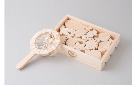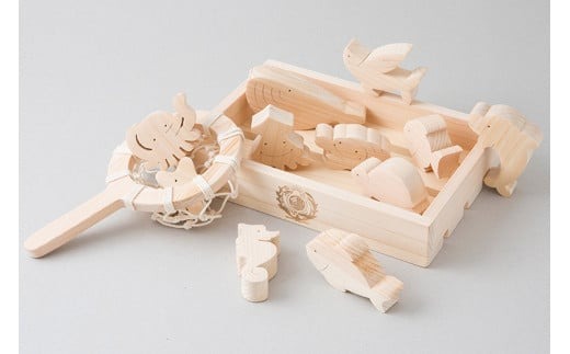 - 木のおもちゃ おふろでちゃぷちゃぷ 山のくじら舎 木製 知育玩具 セット お風呂遊び 男の子 女の子 ギフト ラッピング プレゼント 出産祝い 誕生日祝い 名入れ可能 高知県産 11種類 魚 ヒノキ 無塗装 浮く すくう 漁師ごっこ バランス遊び パズル 2歳 幼児 子供 キッズ 水遊び 夏 おもちゃ 安芸市 高知県