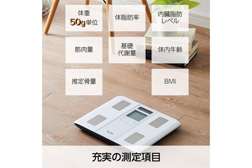 タニタの体組成計がもらえます。日本製で信頼性が高く、体脂肪や筋肉量、基礎代謝、内臓脂肪、体内年齢など多彩な項目をデジタル表示で測定可能です。ホワイトカラーでシンプルなデザインが特徴。最大5人まで登録でき、家族全員で健康管理ができます。サイズは奥行274mm、横幅310mm、高さ33mmで、重さは約1.3kgと軽量。日々の健康管理に役立つ一台です。