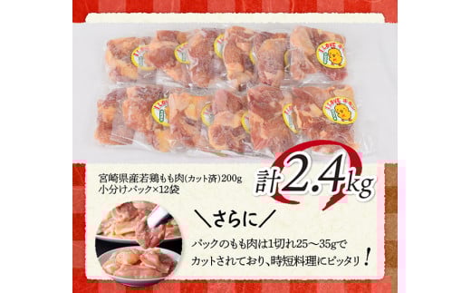 - 【6ヶ月定期便】宮崎県若鶏もも肉2.4kg(200g×12袋) 【 定期便 6回 肉 鶏 鶏肉 若鶏 もも 小分け 】[C06906t6]