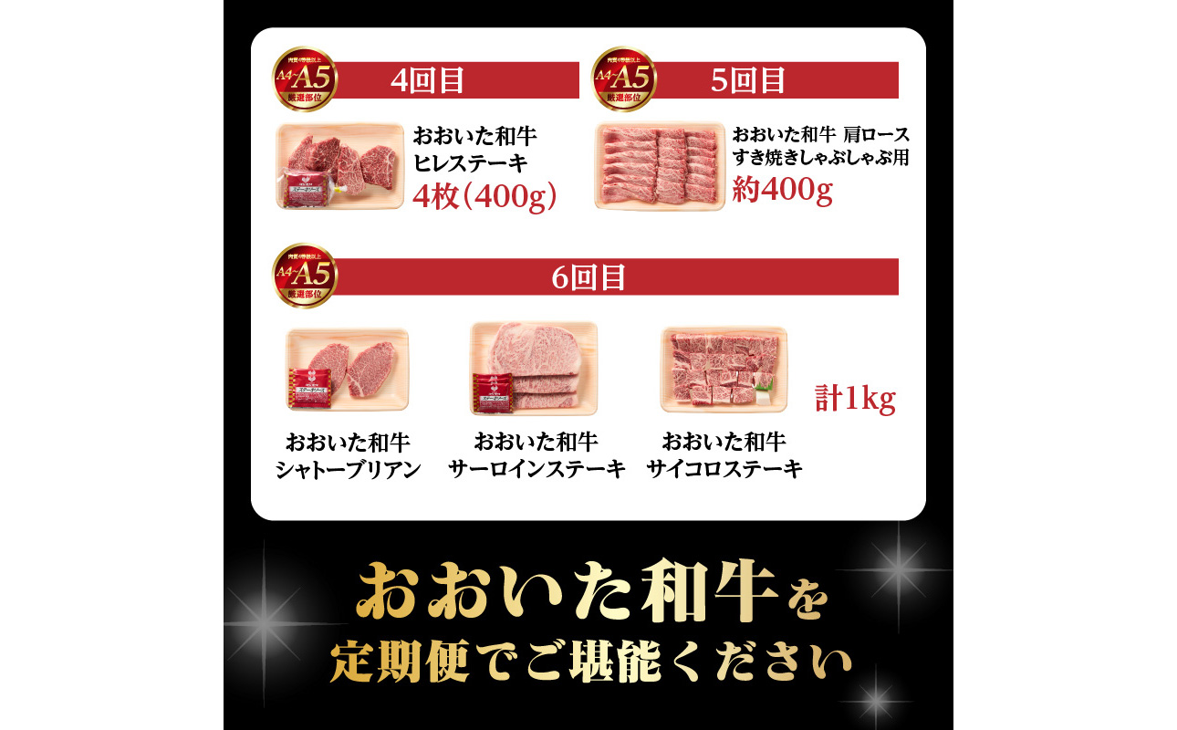 - 【T10099】【毎月配送】【おおいた和牛堪能】毎月6回お届け定期便