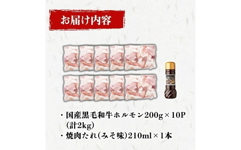 - 国産黒毛和牛ホルモン 焼肉用 (200g×10P計2kg) <特製手作り味噌タレセット> a7-029