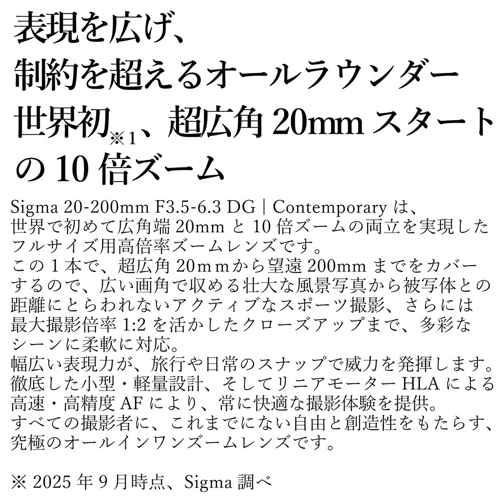 SIGMA 20-200mm F3.5-6.3 DG | Contemporary【ソニーEマウント】