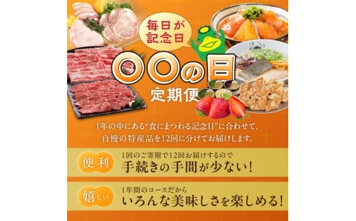 - 「〇〇の日!」12ヵ月定期便 _ 定期便 12回 毎月お届け あまおう 肩ロース 冷凍 焼餃子 焼き立てパン アイスクリーム 抹茶 バニラ チョコ 梅のしずく 生ラーメン 和牛 焼肉 米粉 シュークリーム 珈琲 魚 漬け丼 ハム グルメ おかず フルーツ 厳選 お取り寄せ 福岡県 久留米市 送料無料 _Tk120