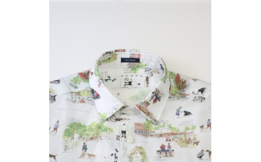 CLOFT 麻100%半袖プリントシャツ”犬とマルシェ柄”犬柄(C/#11ホワイト) L 半袖 シャツ プリントシャツ 犬柄 dog デザイン おしゃれ 個性 上質 こだわり ギフト プレゼント 贈り物 東京 新宿 白 ホワイト 0139-025-S07-2