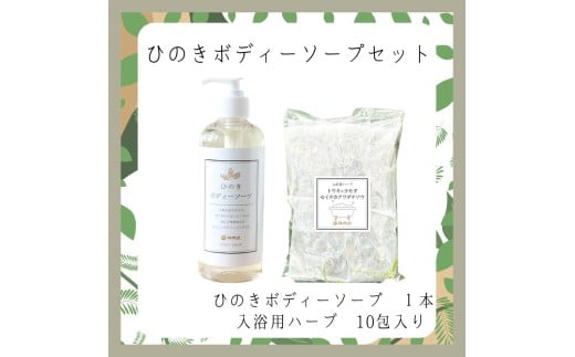 神然流 桧 ボディソープ(1本)&入浴用ハーブ(10包入り)セット | 着色料 不使用 香料 無添加 セット ひのき 入浴 お風呂 癒し 健康 流体 石鹸 洗顔 洗う ヒノキ 香り お肌 美肌 数量限定 シャワー 日用品 美容品 |国産ハーブ浴