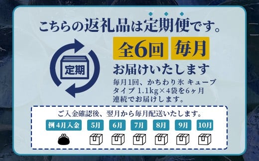 定期便 (6回定期便) さがん氷 かちわり氷 キューブタイプ 1.1kg×4袋×6回 G-71 藤津製氷 こおり 氷 ロック アイス 佐賀 鹿島 九州