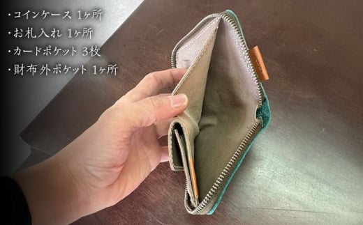 ヌメ革のミニジップウォレット ブルーグリーン[F4570]