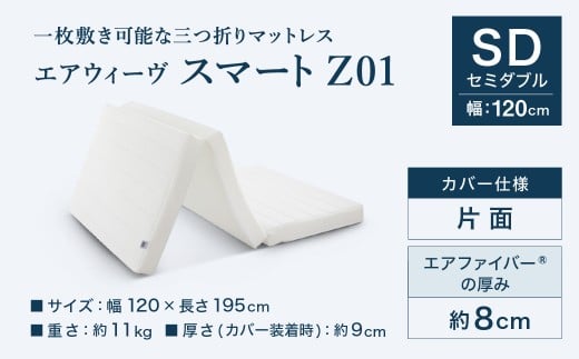 【期間限定 幸田町大感謝祭】エアウィーヴ スマートZ01 セミダブル サイズ / エアウィーヴ マットレス 三つ折り 折りたたみ 洗える 高反発 マットレスパッド 敷き布団 厚さ8cm 折りたたみマットレス 直置き 日本製 寝具 エアウィーブ