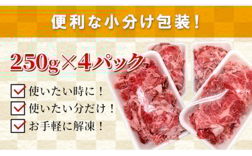 - 入荷しました!大人気につき、最短2026年7月発送★信州高原和牛 切り落とし 1kg (250g×4) 小分け 国産黒毛和牛