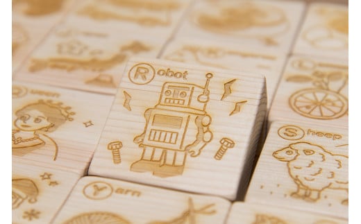 - 木のおもちゃ ABCつみき 積み木 木製 木 おもちゃ 知育玩具 男の子 女の子 ギフト プレゼント 贈り物 贈答 お祝い 出産祝い 誕生日祝い 日本製 手作り てづくり のし 熨斗 受注生産品 名入れ可能 山のくじら舎 高知県 安芸市 英語 教育 幼児 子供 アルファベット 学習 遊び 1歳 2歳 3歳 つみき 56個 イラスト アルファベット ヒノキ スギ シナ合板 蜜ろう 安芸市 高知県