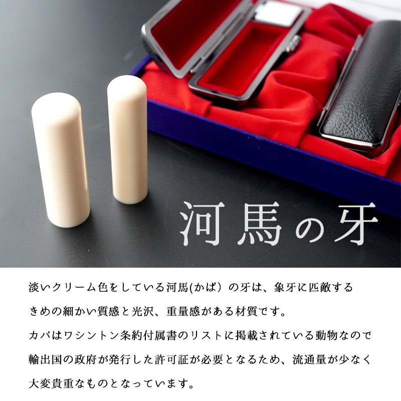 手彫り 印鑑 カバ 実印・銀行印 セット 大 15mm 18mm 2本 : セット 京都 舞鶴 実印 銀行印 河馬 印鑑 はんこ 手彫り