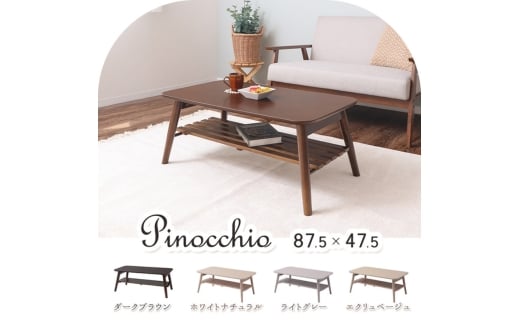 棚付き折れ脚テーブル Pinocchio(ピノッキオ) ホワイトナチュラル