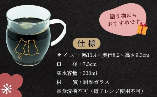 - 蒔絵で描いた 寄り添う猫 ガラス マグカップ 330ml (耐熱ガラス) (Ba-037) |ギフト マグ マグカップ コップ カップ スープマグ ガラス グラス 伝統工芸 蒔絵 おしゃれ かわいい
