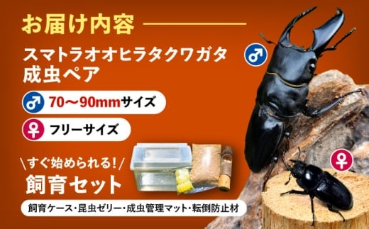 - 【配送不可地域:北海道・沖縄・離島】スマトラオオヒラタクワガタ成虫ペア(オスサイズ70mm〜90mm)飼育セット付き 愛西市 / 艶麗 [AEDD003]
