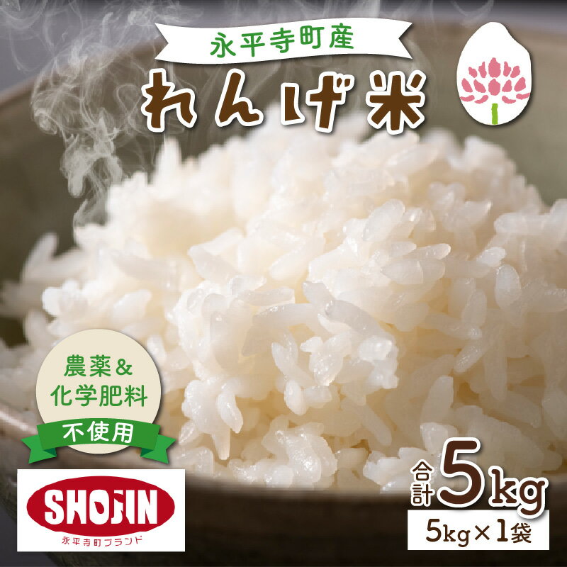 【ふるさと納税】令和7年産 農薬不使用・化学肥料不使用 永平寺町産 れんげ米 5kg / 無農薬 白米 精米 ご飯 ごはん お試し