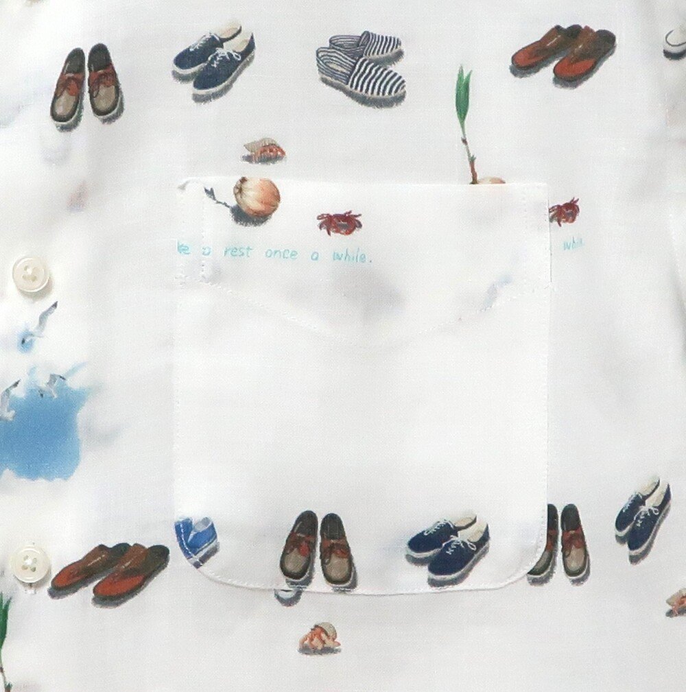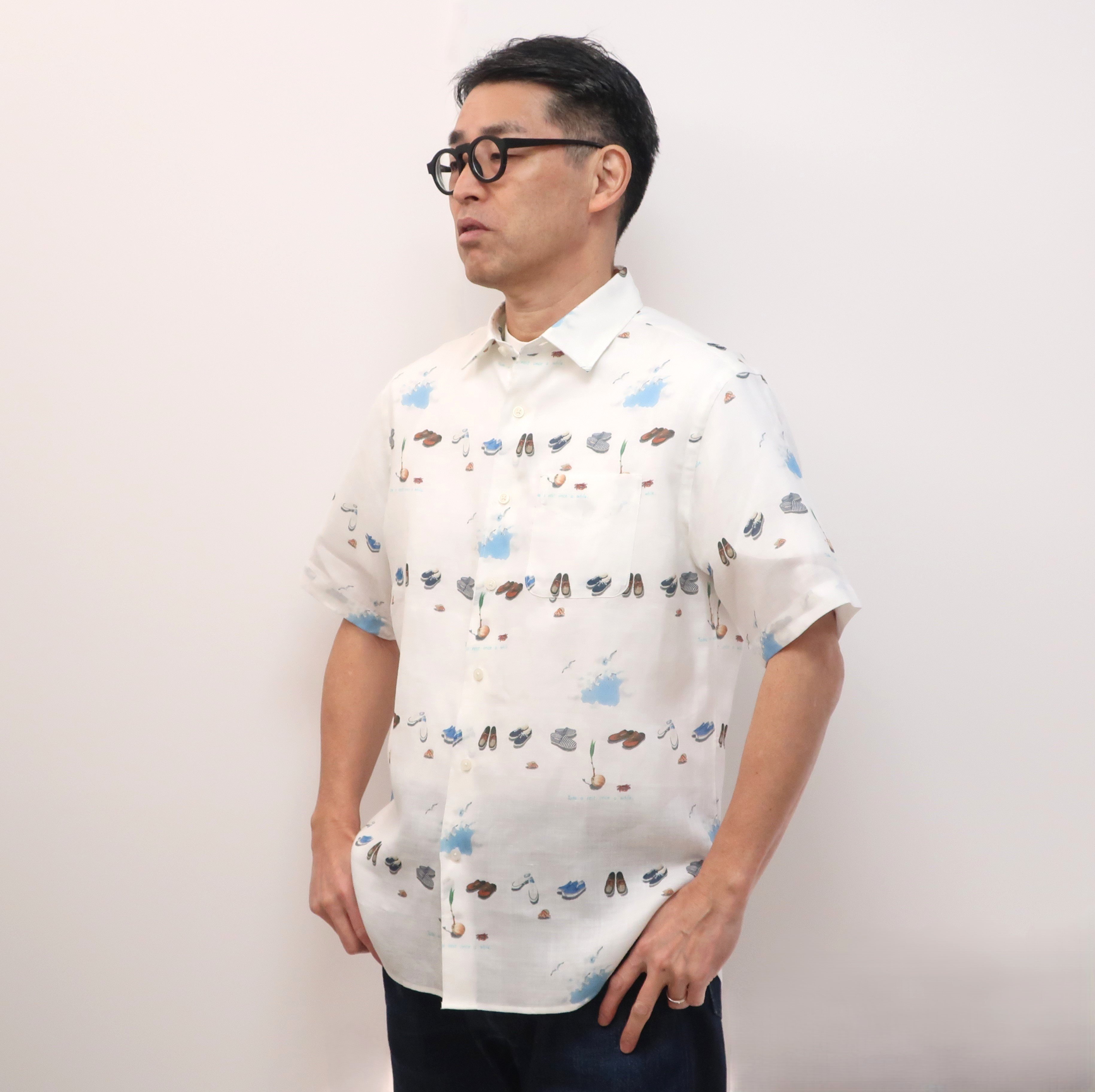 CLOFT 麻100%半袖プリントシャツ”たまにはぼっーとしようよ!”(C/#11 ホワイト) L 半袖 シャツ プリントシャツ デザイン おしゃれ 個性 上質 こだわり ギフト プレゼント 贈り物 東京 新宿 白 ホワイト 0139-028-S07-2
