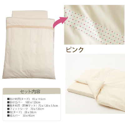 《日本製》洗える オーガニック はじめて ベビー布団セット (ピンク)
