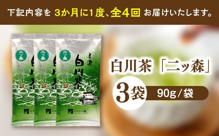 【4回定期便】白川茶「二ッ森」 3パックセット お茶 緑茶 茶葉 白川町 / ますぶち園 [AWAC001]