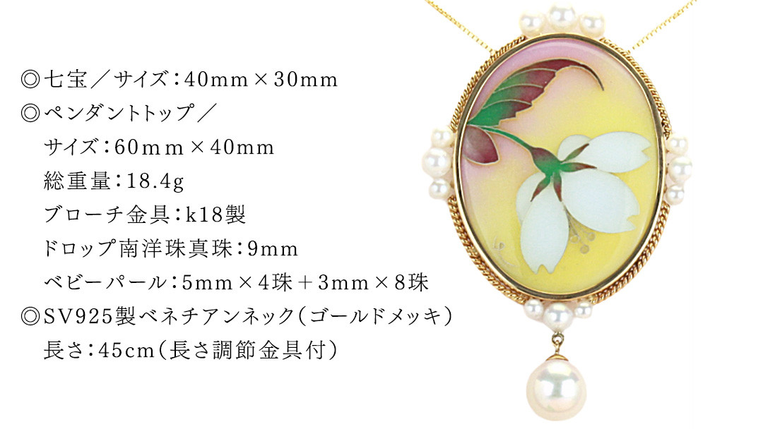 「 桜川 七宝 」 櫻川匂 ペンダント & ブローチ (60mm×40mm) / 母の日 プレゼント ジュエリー 作家 伝統工芸 森千鶴子 記念 ギフト 贈り物 贈答 [AH131sa]